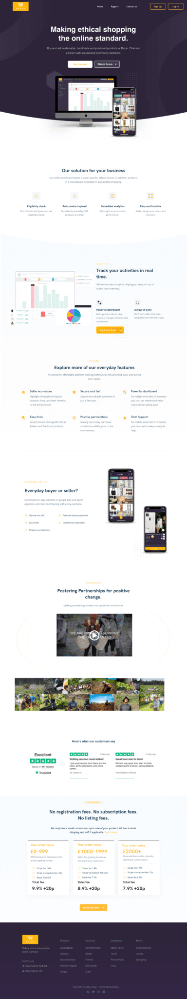 Bazar Ethical Life Marketplace, a new venture aiming to support retailers in the sustainable and ethical space, approached us in 2018. They needed a corporate website and a custom backend dashboard for sellers, integrated with their marketplace app. The goal was to facilitate the onboarding of initial retailers and manage their accounts, products, and sales data through the web, ideally utilising existing open source software.