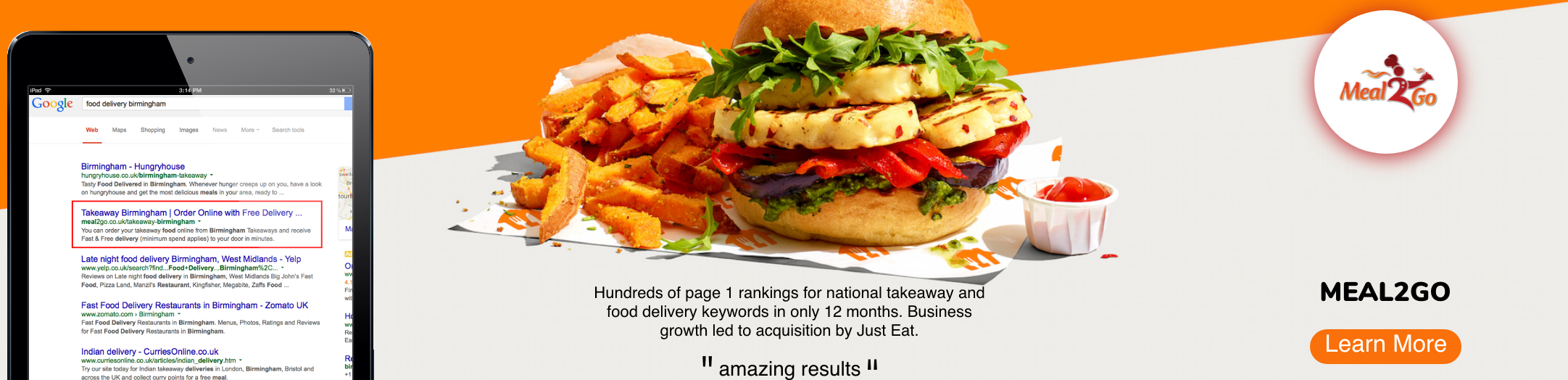 In 2010, the UK’s first online takeaway food ordering provider Meal2Go came to Opace for seo support. Working on a project to deliver top rankings for nationally competitive takeaway and food delivery keywords, we delivered impactful national search engine optimisation for this online business.