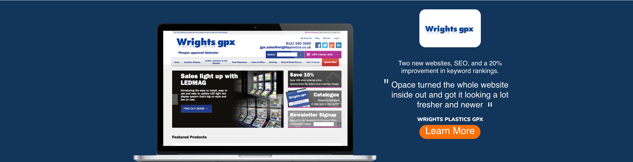 When GPX Group were purchased by Wrights Plastics, it was clear that the existing website was dated and the business needed a digital partner to help them improve their online offering. Wrights Plastics approached Opace in 2011 as we came recommended and our relationship grew from there.